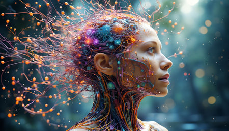 Surreal concept of neural network operation in human form. Fantasy concept , Illustration painting.