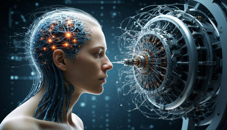 3D rendering of a female cyborg with an electrical circuit in her head