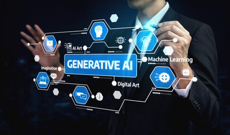 A professional man showcases the concept of generative AI, highlighting its potential in technology, digital art, and machine learning for creative solutions. Tessel