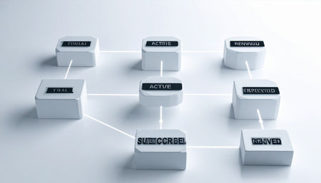 Business process and workflow automation with flowchart. Hand holding white cube arranging processing management. 3d illustration