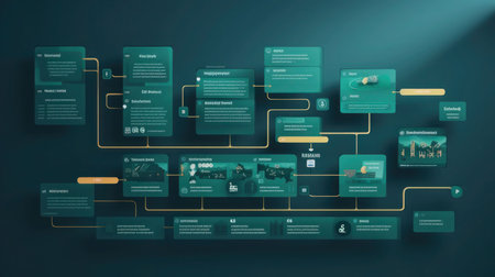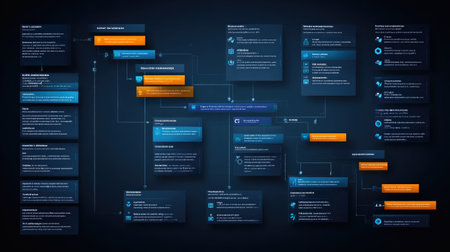 This vibrant flowchart captures the essence of process mapping, showcasing strategic planning elements for business analysis in a modern digital format.