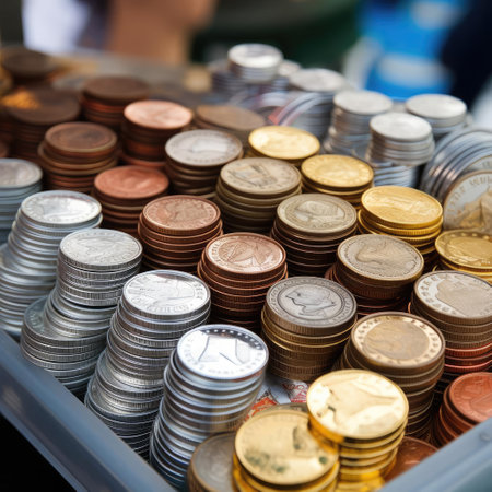 This image features an organized display of coins in clear storage containers, highlighting the texture and color of the currency while illustrating effective organizational methods for personal finance.