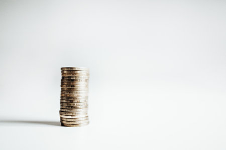 A series of coins organized in progressively taller stacks, representing financial growth and investment potential, set against a minimalistic light background.