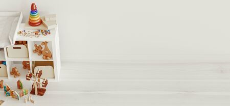 Baby room interior with toys. Banner design. 3d rendering illustration