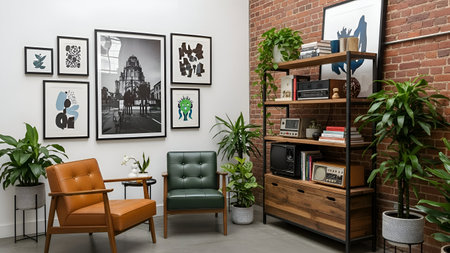 Inspiring office interior design Industrial style Corporate Office featuring Exposed brick wall architecture. Generative AI AIG 31.