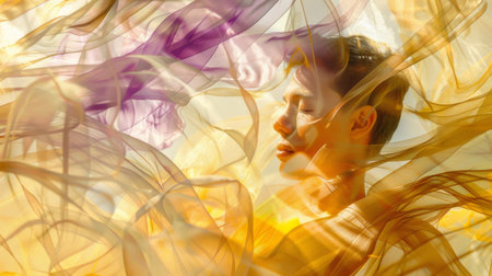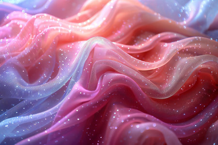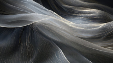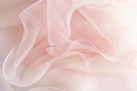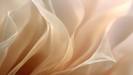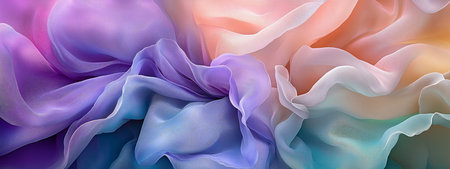 A creative digital illustration depicting Artistic design of silk organza sheer layers, translucent folds, soft diffused backlight, ethereal opulence, pale pastels with floating highlights. This AI-generated artwork features unique visual elements suitable for various commercial and editorial applications. AI-generated illustration.