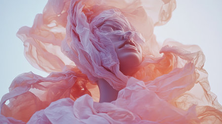 A beautiful composition showcasing soft flowing fabric textures in pastel shades. This image captures the elegance and gentle movement of light materials.