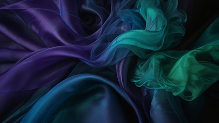 Delicate fabric flows gracefully with smooth silk and iridescent sheen