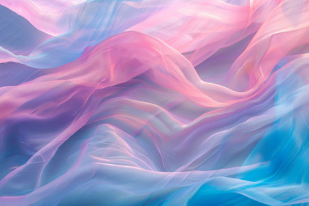 A close-up of a soft, pink and blue fabric with a gradient effect, draped in a flowing, ethereal manner.
