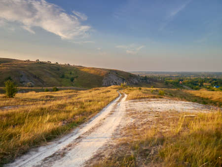 a country road among the chalk hills at dawn