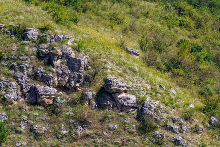 A view of the Reut river valley in Trebujeni, natural landscape of limestone rock. Republic of Moldova.