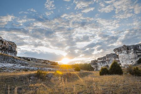 Photos of the Crimean autumn peninsula, Ak-Kaya White rock, Belogorsky district, the Biyuk-Karasu river, the Mousterian era, the settlements of the Sarmatians and Scythians, Altyn Teshik cave