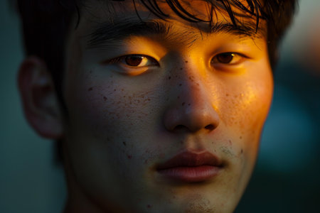 Thoughtful Asian young man portrait. Face man person happy male. Generate Ai