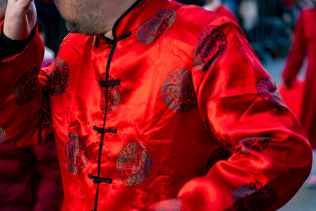 Chinese citizens celebrating Lunar New Year in the streets during public festivities marking the Year of the Horse in 2026. Cultural tradition and community event.