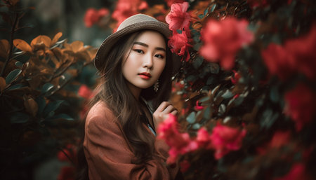 Attractive and Charming Asian Woman with a Cheerful Face and Eyes - Generated by AI