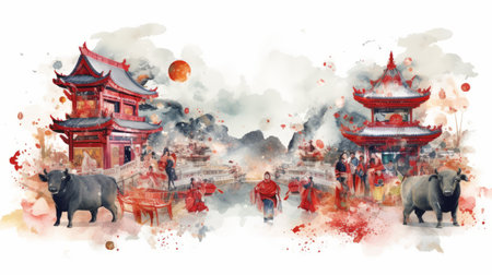 Chinese New Year watercolor white background scene