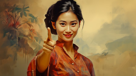 Attractive and Charming Asian Woman with a Cheerful Face and Eyes - Generated by AI