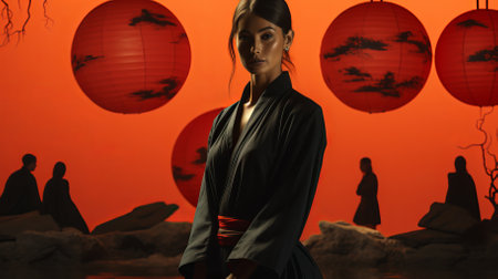 A fashionable Asian woman wearing a kimono