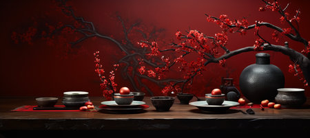 Traditional Chinese New Year Decor. Customizable Wall Mockup with Ample Copy Space