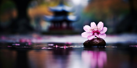 a pink flower on a rock in water