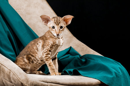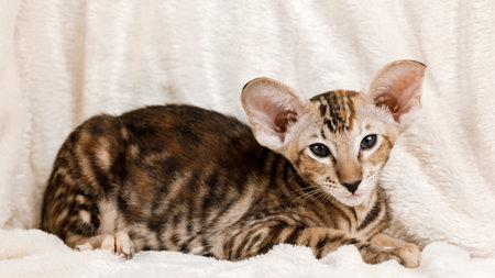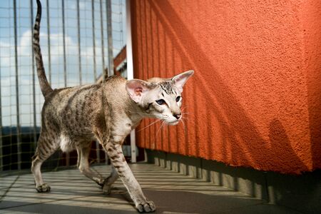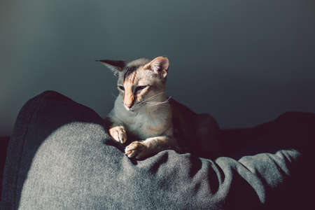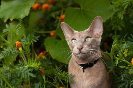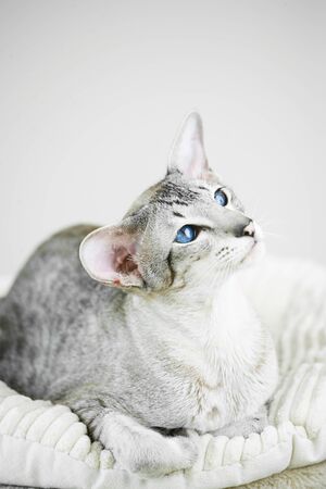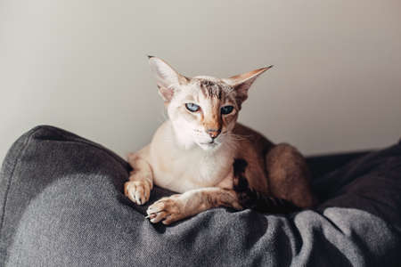 Portrait of an Oriental cat. The concept of keeping and breeding of cats in the home.