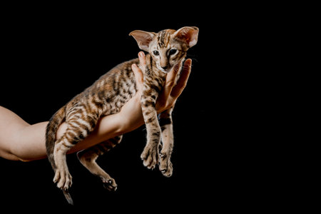 Beautiful cat with big ears on a black background