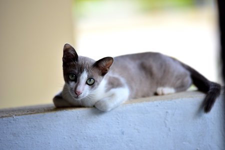 A cute cat resting on the wall