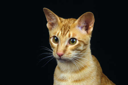 Red Oriental Domestic Cat, Portrait of Adult against Black Background