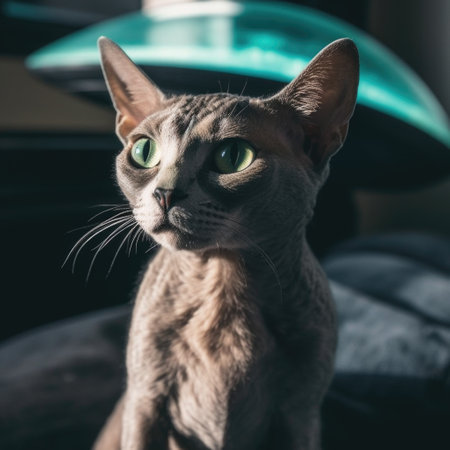 Oriental Cat portrait close up created with Generative AI technology.