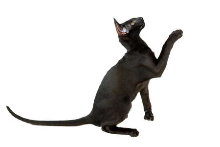 Black purebred oriental cat little kitten isolated on white background