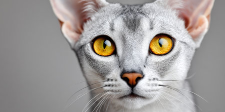Captivating Singapura Cat Portrait A Close-Up of the Elegant Shorthair s Beauty on Gray Background