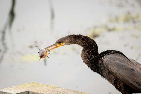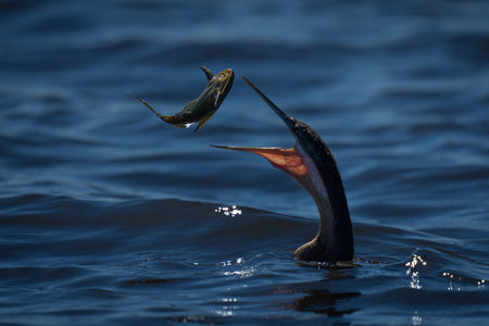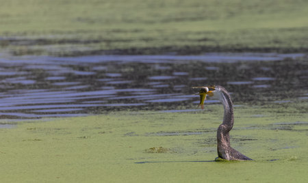 Anhinga (snake bird, water turkey, darter) downing a fish in Florida wetlands . Usa