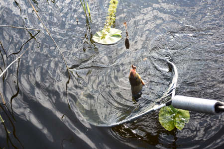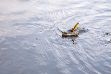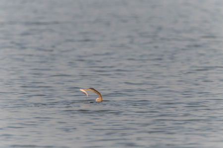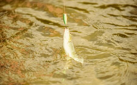Sport fishing in the north river. Dynamic picture when Saberfish (Pelecus cultratus) are brought to the surface