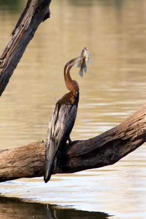 African Darter - Anhinga rufa, common brown darter from African lakes and rivers, Murchison falls, Uganda.