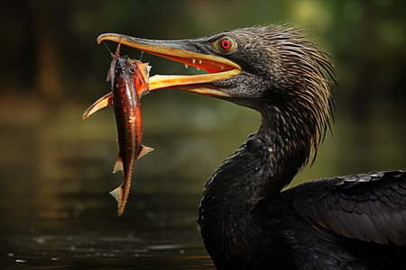 Captivating Image: Adult Female Anhinga Skillfully Nabs Fish with Piercing Beak (Aspect Ratio 3:2)