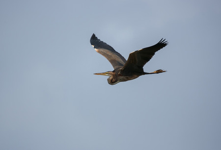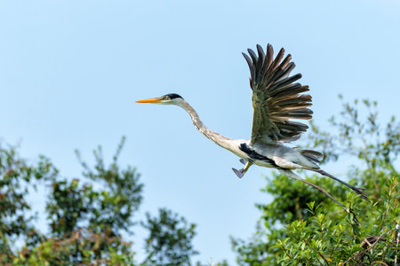 Grey Heron Flight (ardea herodias) Grey Headed Heron Flying Blue SkyÂ