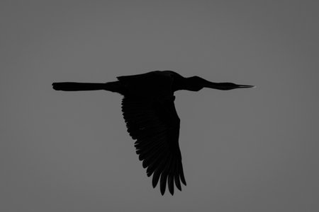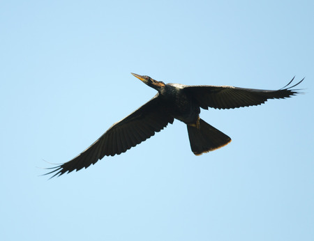 Anhinga in flight. Latin name -Anhinga anhinga.