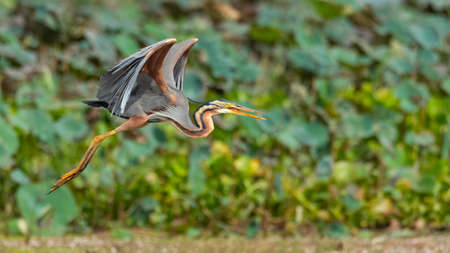 cocoi heron (Ardea cocoi) flying and searching for food in the wetlands of the North Pantanal, Mato Grosso, Brazil