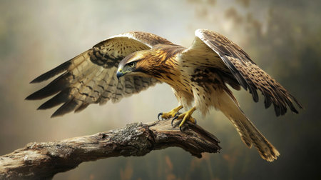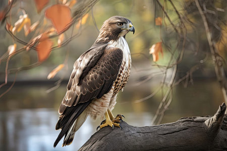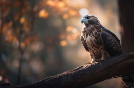 Majestic hawk perching on branch, eyeing prey generated by artificial intelligence generated by artificial intelligence