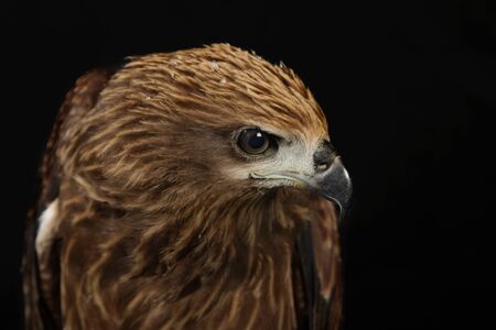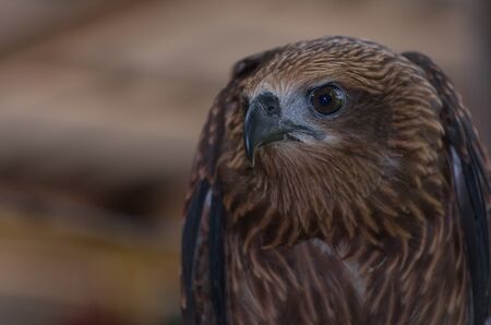 Closeup of a Beautiful Brahminy Kite or Red-backed Sea Eagle, a red hawk found along coastal areas and mangrove forest in Thailand