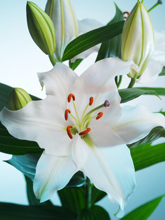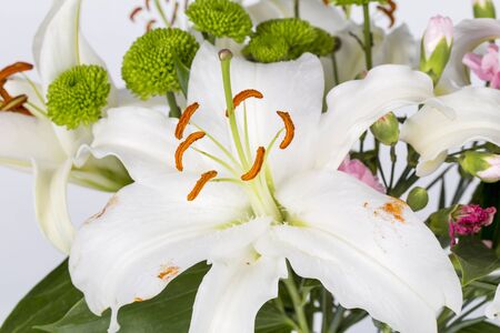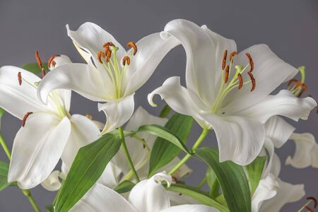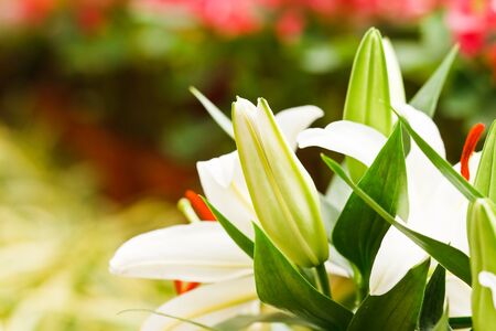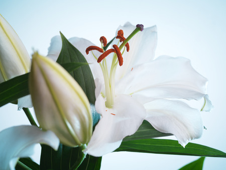 Real luxurious white blooming lily flower for heart present and lovely mood