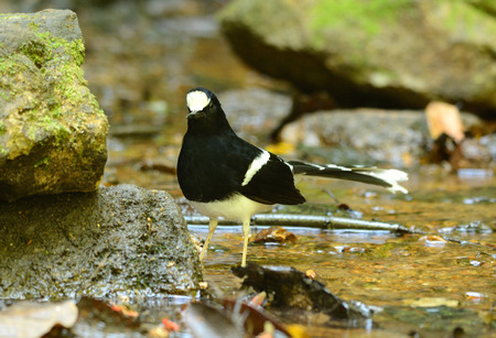 beautiful White-crowned Forktail (Enicurus leschenaulti) in Thai forest