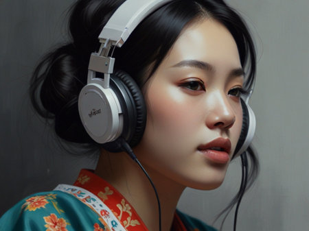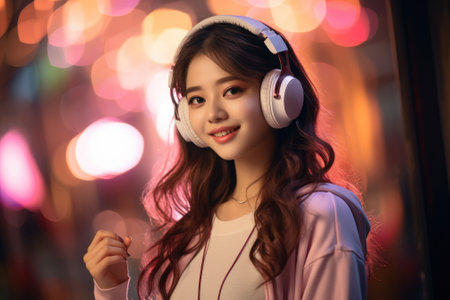 Charming Asian girl with earphones