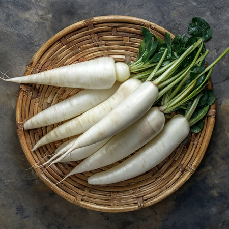 Fresh Daikon Radish Still Life: Natural Food with a Delicate Appearance