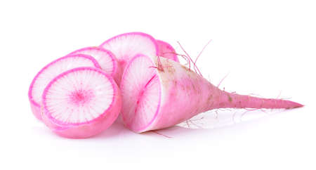 Sliced red-purple radish on white background