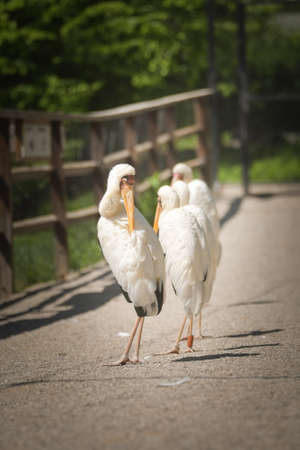 storks in the aviary close up selective focus