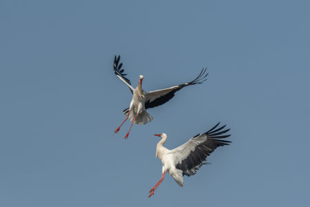 White storks flying in the sky