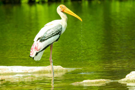 Painted stork drinking water or dripping water from its beak