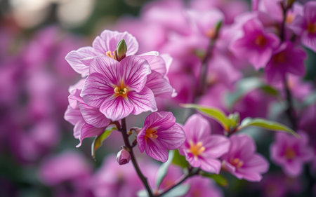 Beautiful pink flowers bloom in a garden during spring, showcasing vibrant colors and delicate petals