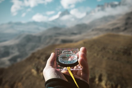 Holding compass to find the way